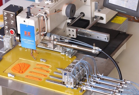 Es una máquina de coser automática hecha a medida para unir la construcción de goma a guantes de protección de alta resistencia, para mayor protección. Maquina para pegar goma a los guantes.