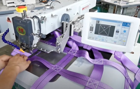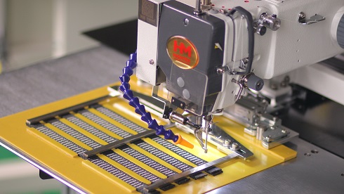La cinta porta cascos son muy pequeñas y difíciles de coser con una máquina de coser manual. Ahora, con la máquina de coser automática BAS-342G y su plantilla de sujeción para hebillas y correas, ya no se necesitan operarios especializados, ¡y su eficiencia de producción mejora enormemente!