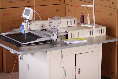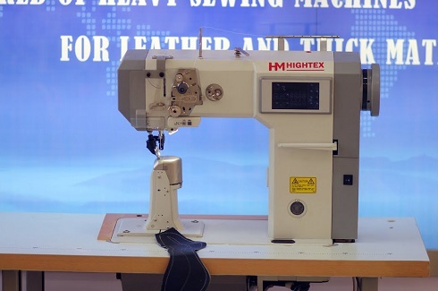 Máquina de coser de base plana controlada por computadora, accionamiento directo con transporte de rueda corrediza y de aguja, pata rodante accionada, para costuras en la producción de calzado. La máquina esta provista de un servomotor el cual asegura la máxima precision del pare en la posicion principal y garantiza casi 100% del rendimiento con las revoluciones bajas.