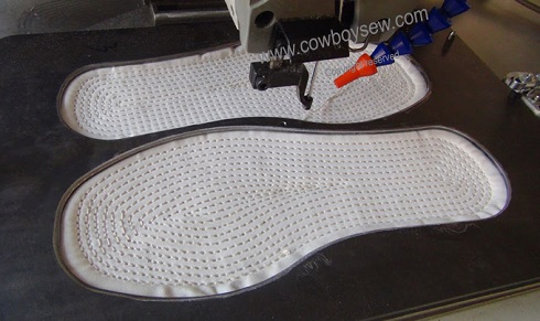 Esta automatización de coser está diseñada para fabricantes suela de zapato. Utiliza el autómata programable, una combinación de 2 máquinas manejadas por una sola persona. La máquina es capaz de empalmillar los zapatos desde los tamanos de nino hasta el calzado en los modelos más pesados para deporte con viras planas, americanas, volteados y otras formas de viras.