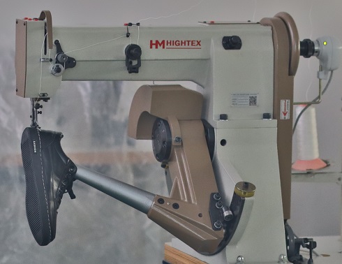 Máquina de pespunte de doble hilo de aguja simple para coser suelas de cajas en zapatos y botines; La máquina tiene un brazo giratorio o bocina que soporta el zapato para facilitar la costura alrededor del dedo del pie y el talón; Max. producción diaria 1000 pares; Esta máquina de costura de suela de pared lateral adopta un mecanismo de alimentación compuesto que garantiza las puntadas uniformes.